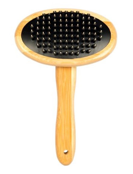 Massageborste av miljövänlig bambu. Mjuka piggar som ger en skön känsla för katten. Förbättrar blodcirkulation och ger pälsen en frisk lyster. Lösa hårstrån fastnar i borsten och är sedan lätta att plocka bort.